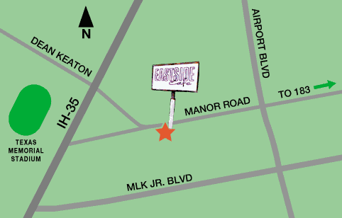 a right on Manor Rd. Go 4 blocks from I-35 and roll through the yield