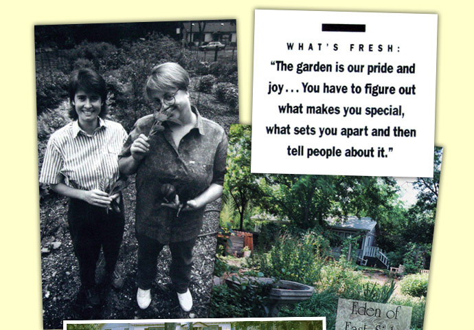 The garden that Carla Blumberg started in 1982, by trucking in organic compost from her farm in Bertram, Texas, is still gardened today using only organic methods and practices. Although we buy the vast majority of our vegetables from conventional sources, we feature the vegetables, herbs and flowers that we grow, in our favorite soups, sauces, and vegetable side dishes, and as garnishes to brighten every plate.